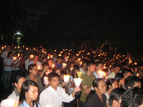 VRNs (30.05.2011) – Sài Gòn – Như đã thông báo, thánh lễ lúc 20g00 Chúa Nhật 29/05/2011, DCCT Sài Gòn đã cùng với hàng ngàn anh chị em giáo dân, nhất là những người yêu chuộng công lý, họp nhau cầu nguyện cho công lý và hòa bình trên quê hương Việt Nam, cho những người dân oan và gia đình họ đang đau khổ vì cảnh chia ly do nhà cầm quyền gây ra một cách bất công. Thánh lễ hôm nay đặc biệt cầu nguyện cho gia đình của Blogger Điếu Cày (tức nhiếp ảnh gia tự do Nguyễn Văn Hải), Blogger Anh Ba Sàigòn (tức luật gia Phan Thanh Hải) và cụ Nguyễn Văn Lía ở miền Tây.