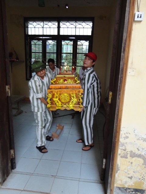Anh Dũng mang theo bộ quần áo vét tông mới để thay cho bộ đồ tù của cha anh nhưng không được chấp thuận cho thay.