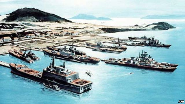 Hình vẽ minh họa căn cứ hải quân của Liên Xô tại vịnh Cam Ranh vào đầu thập niên 1980